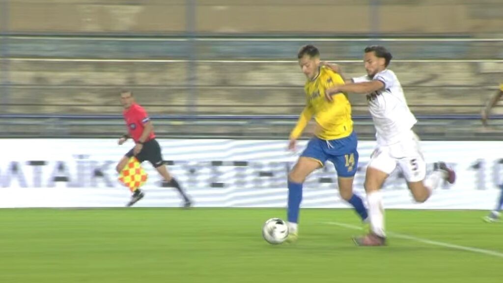 Ο Γάλλος αρχιδιαιτητής της ΚΕΔ αξιολογεί ότι η μπάλα στην ανατροπή του Σέρβου φορ είναι… διεκδικήσιμη και ότι ο αμυντικός της ΑΕΛ πήγε με πρόθεση να πάρει αυτή.