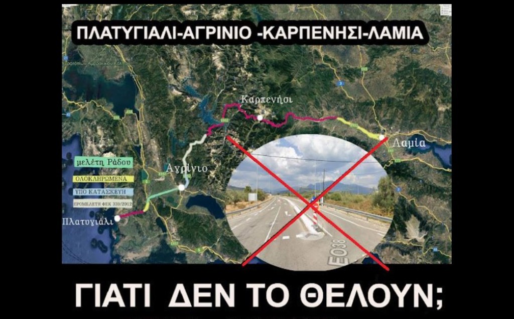 Θα γίνει ανοικτή συζήτηση για «το λόγο που ο οδικός άξονας Πλατυγιάλι-Αγρίνιο-Καρπενήσι-Λαμία δεν προχωρά ούτε στο ελάχιστο παρόλο που το ζητά η τοπική κοινωνία και παρ’όλες τις κινητοποιήσεις, παρεμβάσεις, ερωτήσεις στη Βουλή που έγιναν ιδίως τα τελευταία χρόνια».