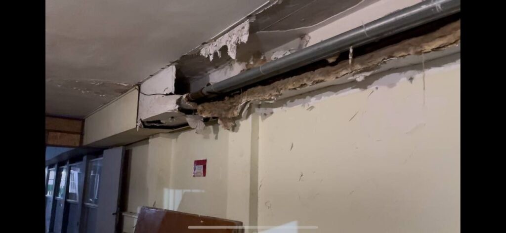 Μόνωση της ταράτσας, ώστε να σταματήσει η είσοδος νερών στις αίθουσες και οι φθορές που επιδεινώνονται καθημερινά.