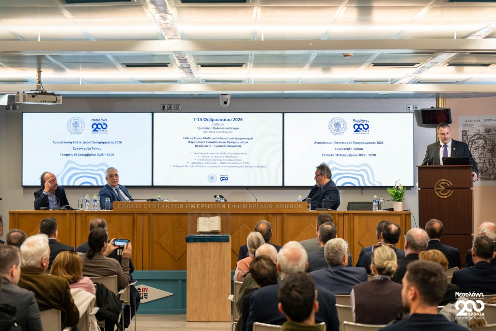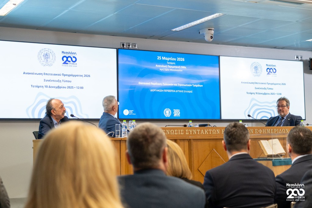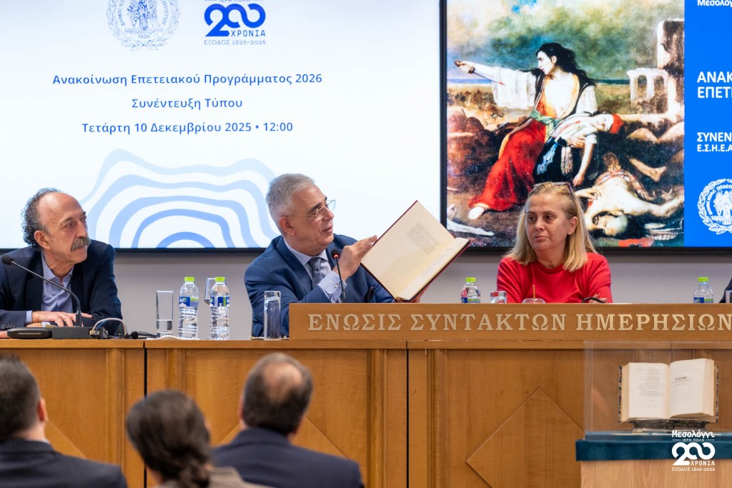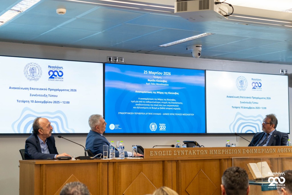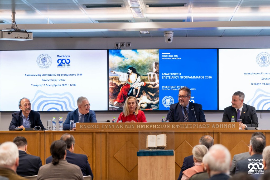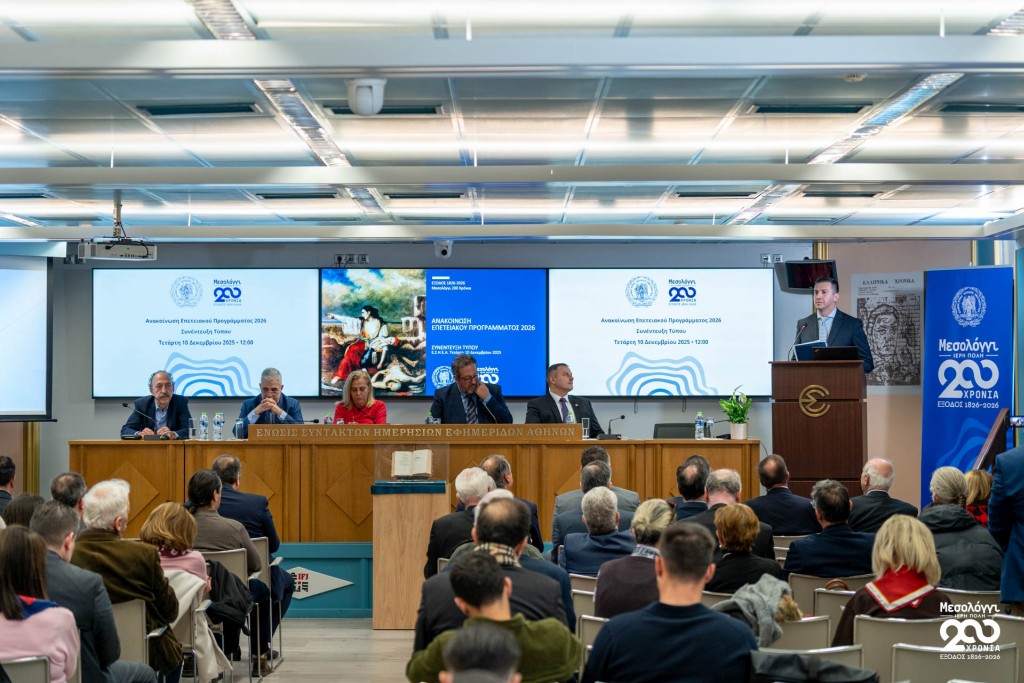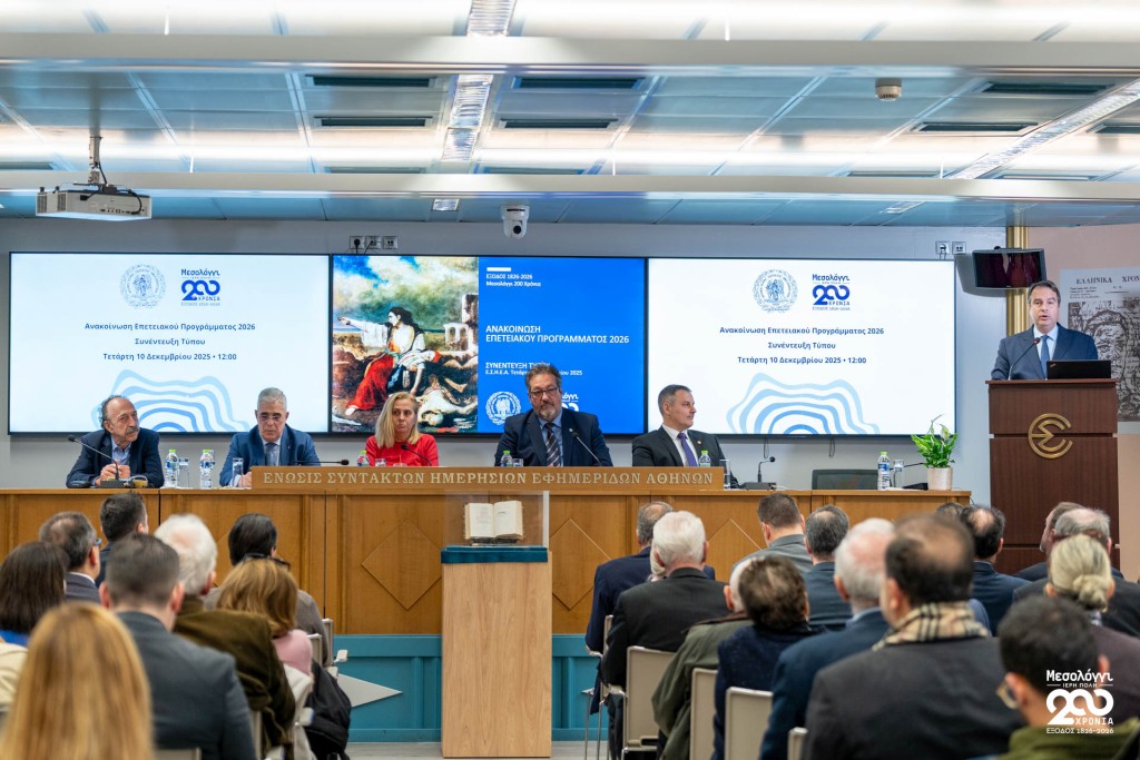 Σήμερα Τετάρτη 10 Δεκεμβρίου 2025, στην αίθουσα «Γιώργος Καράντζας» της ΕΣΗΕΑ, πραγματοποιήθηκε συνέντευξη Τύπου του Δημάρχου Ιεράς Πόλεως Μεσολογγίου, Σπυρίδωνος Β. Διαμαντοπούλου, κατά την οποία παρουσιάστηκε το πρόγραμμα εκδηλώσεων για τη Διακοσιοστή Επέτειο της Εξόδου.