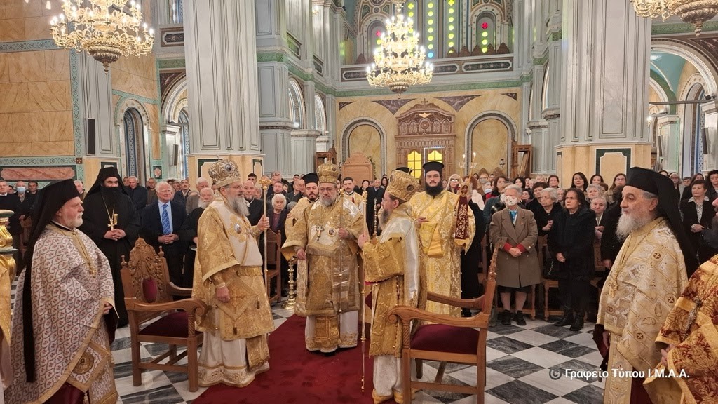 Παρουσιάζοντας τους Αγίους Αρχιερείς στον λαό του Θεού, ανέφερε ότι ο μεν Επίσκοπος Επιδαύρου, ο οποίος χοροστάτησε χθες στην ακολουθία του Εσπερινού, είναι βοηθός Επίσκοπος του Μακαριωτάτου Αρχιεπισκόπου μας κ. κ. Ιερωνύμου, έλκει την καταγωγή του από την Αιτωλοακαρνανία και αποτελεί γέννημα και θρέμμα της Ενορίας της Ματαράγκας Μακρυνείας. Για τον προεξάρχοντα της λατρευτικής συνάξεως, Μητροπολίτη Μεσσηνίας κ. Χρυσόστομο, τόνισε ότι διακρίνεται για την θεολογική του κατάρτιση και την δυναμική του παρουσία στα διορθόδοξα και διαχριστιανικά ζητήματα και θέματα.