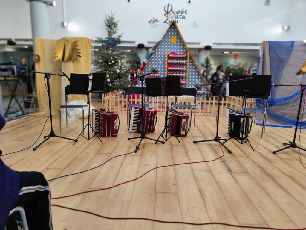 Το πρόγραμμα άνοιξε με το μουσικό μέρος «Πριν αρχίσει το φως», από την Ενήλικη Ομάδα Ακορντεόν του Καλλιτεχνοχωριού, η οποία παρουσίασε χριστουγεννιάτικες μελωδίες και ζεστούς ήχους, δημιουργώντας το κλίμα των ημερών.