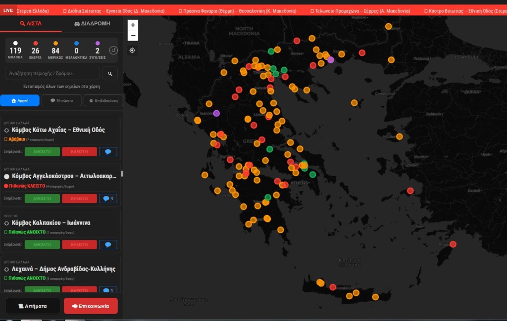 Μια πολύ χρήσιμη εφαρμογή που αποτυπώνει σε ένα διαδραστικό γράφημα όλα τα μπλόκα των αγροτών επιτρέπει σε όσους θελήσουν να ταξιδέψουν να γνωρίζουν τα εμπόδια που πρόκειται να συναντήσουν στον δρόμο τους.