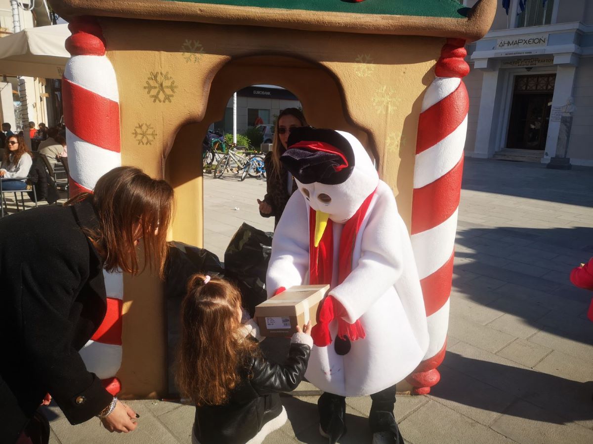 Μικροί δημιουργοί, μαζί με τις οικογένειές τους, συμμετείχαν σε μια ανοιχτή γιορτή παιχνιδιού, δημιουργίας και χαράς, ζωγραφίζοντας, κατασκευάζοντας και φτιάχνοντας το δικό τους μοναδικό χριστουγεννιάτικο δώρο. Η πλατεία γέμισε χρώματα, παιδικές φωνές και γιορτινή διάθεση, ενώ ξεχωριστή νότα έδωσε η παρουσία του Χιονάνθρωπου, που φωτογραφήθηκε με τα παιδιά.