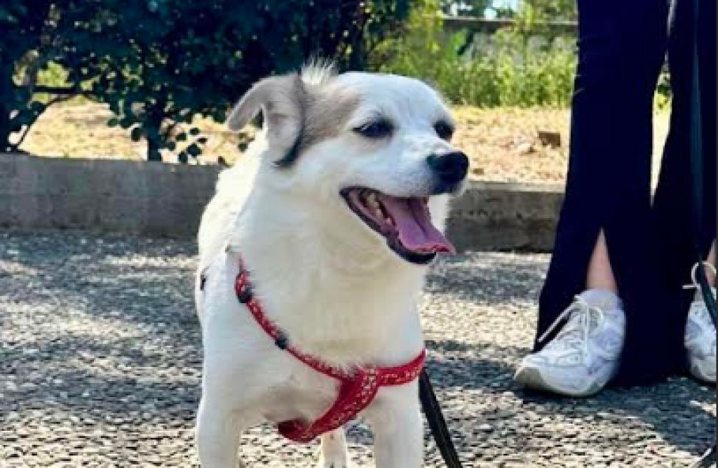 Το σκυλί της φωτογραφίας φοράει κόκκινο κολάρο και το φωνάζουν “Μαξ”