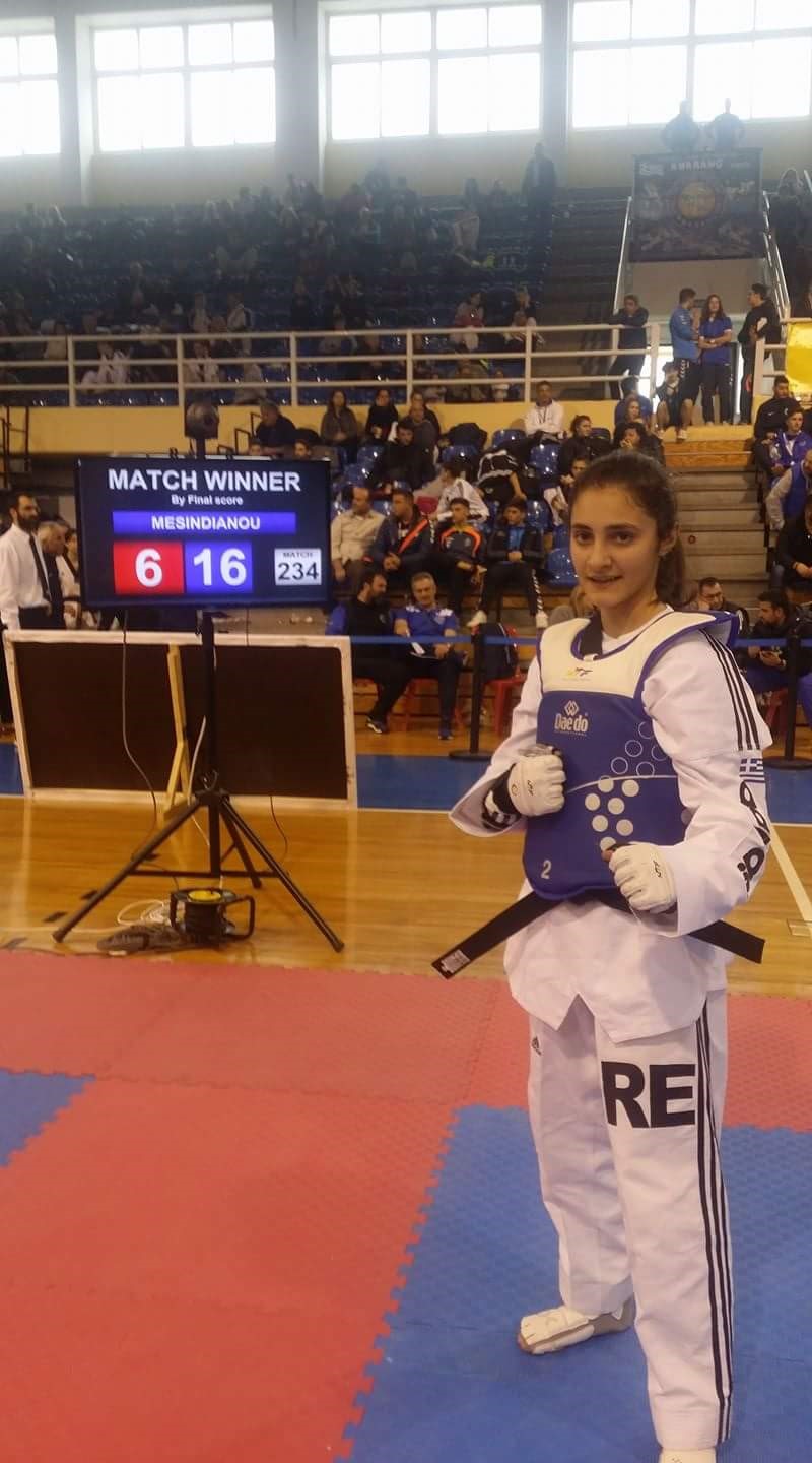 Μεσυνδιάνου Ρέα χρυσό μετάλλιο στα - 46 κιλά Γυναικών. Η Μεσυνδιανου ήταν η μικρότερη αθλήτρια που συμμετηχε στην κατηγορία της αλλά απέδειξε για 2η χρονιά ως αήττητη πρωταθλήτρια ότι το μέλλον της ανήκει. Μετά από 4 δύσκολους αγώνες κατάφερε να κερδίσει το χρυσό μετάλλιο. Στον 2ο αγώνα αγωνίστηκε απέναντι στο φαβορί της κατηγορίας την 3η πρωταθλήτρια Ευρώπης και κατάφερε μετά από 1 συναρπαστικό αγώνα να κερδίσει 16 -6 .