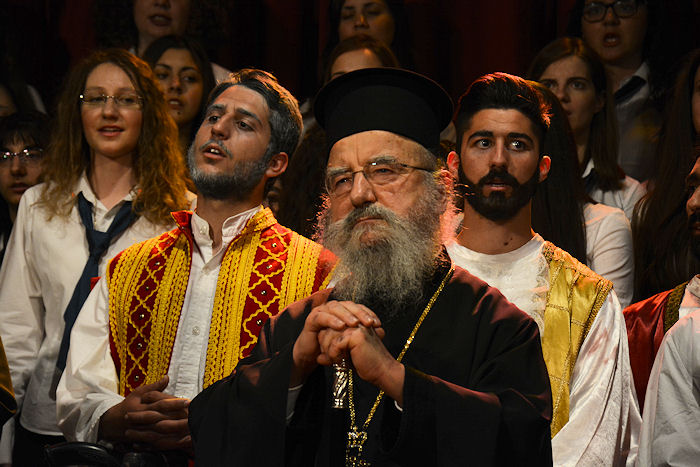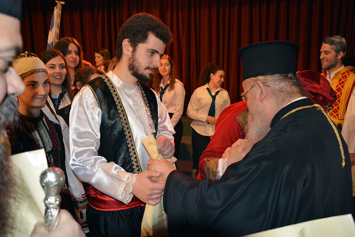 Την εκδήλωση έκλεισε ο Σεβασμιώτατος Ποιμενάρχης μας κ. Κοσμάς ευχαριστώντας τον Μητροπολίτη Πατρών για την ομιλία του, αλλά και τους συνεργάτες του και όλους όσους κοπίασαν για την προετοιμασία και την αρίστη παρουσίαση. Ο Σεβασμιώτατος κ. Κοσμάς αναφέρθηκε στο μήνυμα της θυσίας των Εξοδιτών και προέτρεψε τους παρισταμένους να αντλήσουν μηνύματα φιλοπατρίας από «την τόσο πετυχημένη θεατρική παράσταση που αναζωπυρώνει το εθνικό φρόνημα», ζωντανεύοντας την πολιορκία και την Έξοδο του Μεσολογγίου. Τόνισε πως σ’ αυτή την παράσταση «που μας έκανε να νοιώσουμε πραγματικά Έλληνες και Μεσολογγίτες, έπρεπε να είναι παρόντες όλοι εκείνοι που αμφισβητούν την γνησιότητα του 1821… να πάρουν μάθημα από τους λεβέντες νέους και νέες που μας δίδαξαν πως εδώ είναι Ελλάδα και δεν σκλαβώνεται η Ελλάδα!»
