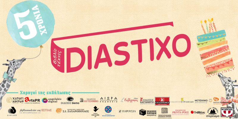 Το Diastixo.gr, το μεγαλύτερο ελληνικό ενημερωτικό site για το βιβλίο και τον πολιτισμό, γιορτάζει τα πέντε χρόνια λειτουργίας του και προσκαλεί όλους τους αναγνώστες του σε ένα μεγάλο πάρτι στο Polis Art Cafe, την Πέμπτη 28 Σεπτεμβρίου από τις 21:00, για ένα ποτήρι κρασί.