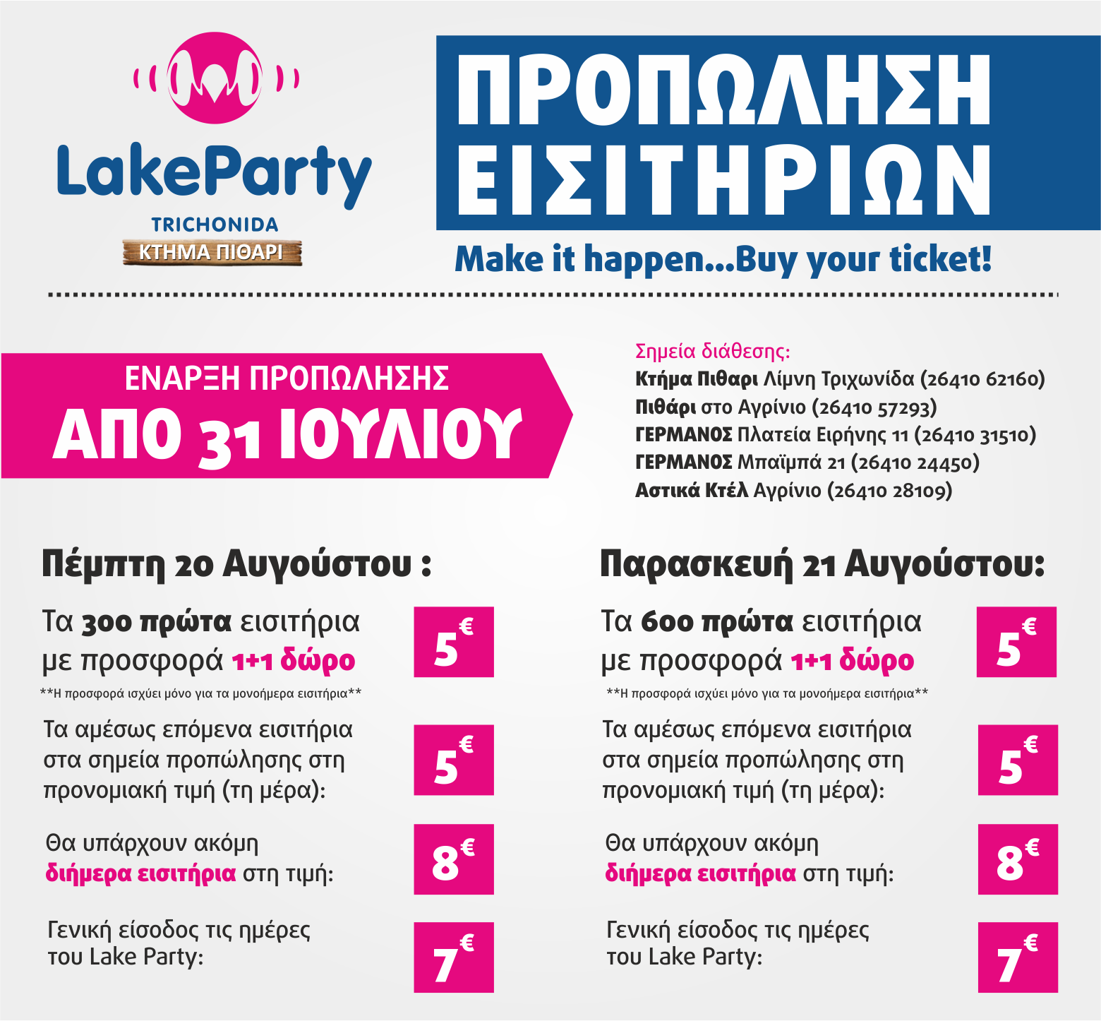 Το 9ο LakeParty μπορεί να τελείωσε με τις καλύτερες εντυπώσεις, αλλά όπως σας υποσχεθήκαμε το 10ο φτάνει σε λίγες μόνο ημέρες, ακόμη πιο δυνατό και με ακόμη περισσότερες εκπλήξεις. Γιατί αυτό το καλοκαίρι σημαίνει LakePartyTrichonida!!!