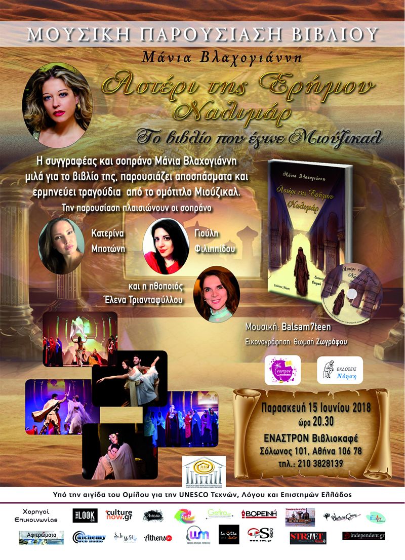 Στο φιλόξενο χώρο του Βιβλιοκαφέ ΈΝΑΣΤΡΟΝ η συγγραφέας θα μιλήσει για το βιβλίο της και τη δημιουργία της ομότιτλης Ροκ Όπερας.