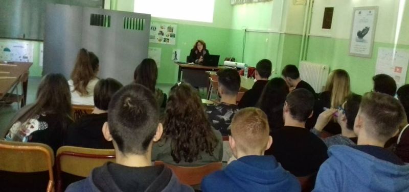 Κ κα Σάντυ Κρητικού μιλάει στους μαθητές του 6ου Γ.Ε.Λ. Αγρινίου