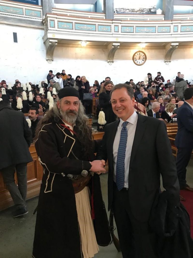 Ο Σπήλιος Λιβανός, Σύμβουλος Επιχειρηματικότητας του Προέδρου της ΝΔ και υποψήφιος βουλευτής Αιτωλοακαρνανίας, συμμετείχε την Κυριακή 24 Φεβρουαρίου στην εκδήλωση αναγέννησης του Ιερού Λόχου του Αλέξανδρου Υψηλάντη, στο Εθνικό Ιστορικό Μουσείο.