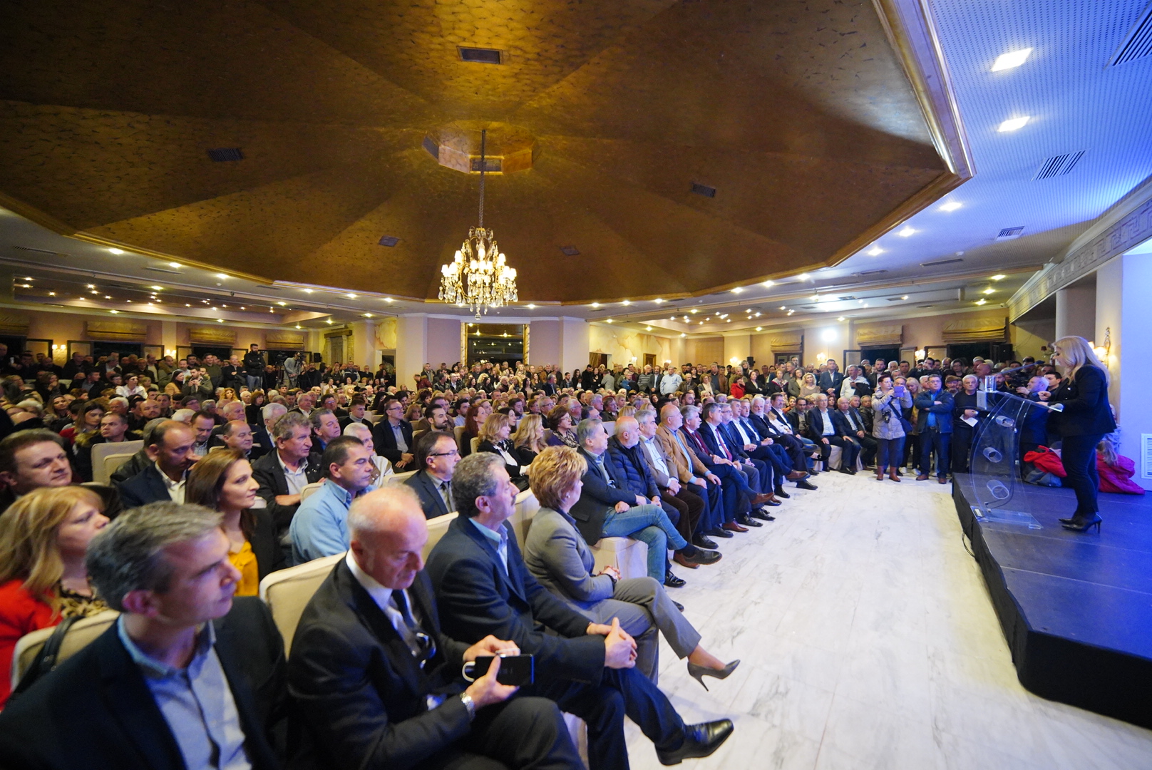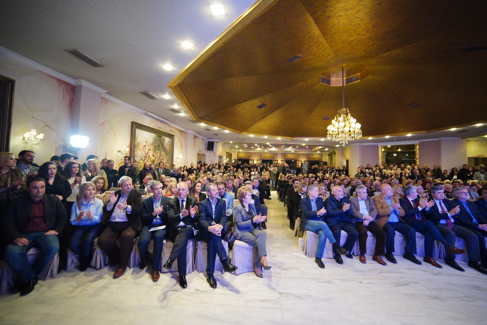 Εκατοντάδες Αγρινιώτες γέμισαν ασφυκτικά την αίθουσα και τον περιβάλλοντα χώρο δείχνοντας την αποφασιστικότητά τους στις εκλογές του Μαΐου ο δήμος Αγρινίου να έχει νέα Δημοτική Αρχή.