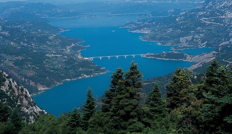 Η θέση «Τσαγκαράλωνα», κοντά στα Φιδάκια Ευρυτανίας, προσφέρει μαγευτική θέα στη λίμνη Κρεμαστών και τη γέφυρα Επισκοπής.