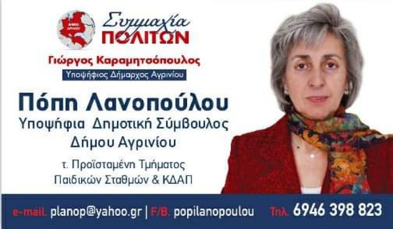 Στο κάλεσμα του Υποψηφίου Δημάρχου Αγρινίου Γιώργου Καραμητσόπουλου και στο όραμά του για έναν Δήμο χωρίς κομματικούς κηδεμόνες, αλλά μαζί με την κοινωνία, δηλώνω παρούσα.