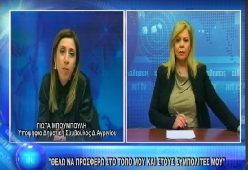 Η Γιώτα Μπουμπούλη, υποψήφια δημοτική σύμβουλος και εκπρόσωπος τύπου της παράταξης του Νίκου Καζαντζή στο κεντρικό δελτίο ειδήσεων του ART TV μιλάει ανοιχτά για το πανεπιστήμιο του Αγρινίου, τα προβλήματα στο οδικό δίκτυο, τη Συμμετοχική Διοίκηση, ενώ δεν αποφεύγει να αναφερθεί σε τεχνάσματα αντιπάλων όπως δήθεν κομματικές στηρίξεις και δημοσκοπήσεις και δεν διστάζει να τα πει έξω από τα δόντια όπως την έχουμε μέχρι τώρα συνηθίσει