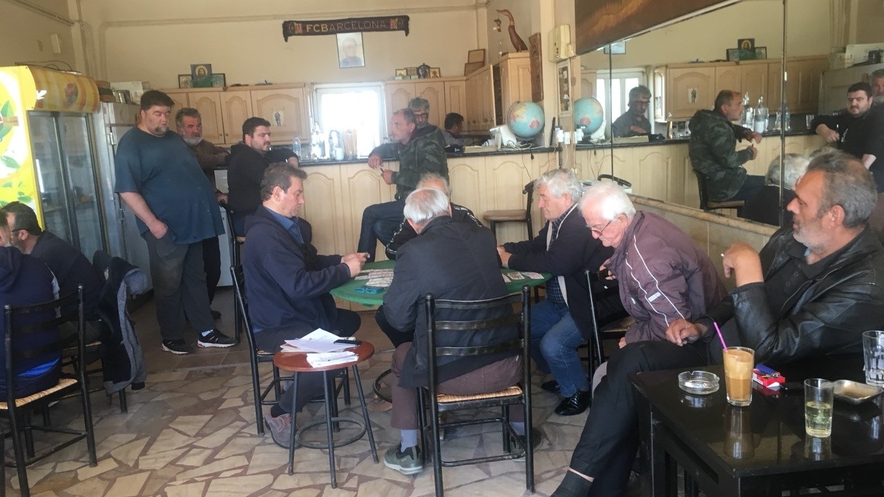 Στο καφενείο Σκάνδαλου στη Γουριά ο Θύμιος Γερολυμάτος αναφέρθηκε επιγραμματικά στις βασικές διαφορές της Λ.Σ. με τους άλλους συνδυασμούς, τονίζοντας πως αυτοί κινούνται στην ίδια ρότα και αυστηρά μέσα στα πλαίσια της πολιτικής που καταστρέφει καθημερινά τη ζωή του λαού.