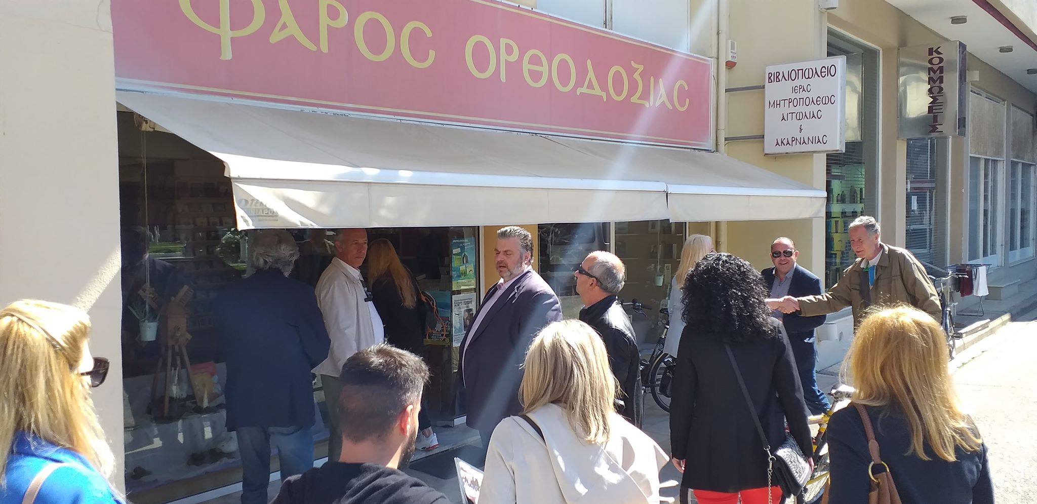 Καταστήματα κι επιχειρήσεις που δραστηριοποιούνται στην οδό Σπύρου Μουστακλή στο Μεσολόγγι επισκέφθηκε σήμερα ο Δήμαρχος Ιεράς Πόλεως Μεσολογγίου Νίκος Καραπάνος, συνοδευόμενος από υποψηφίους και στελέχη του συνδυασμού «δήμος για τα παιδιά μας».