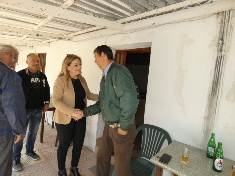 Επισκέφτηκε διαδοχικά τις κοινότητες Άγιος Βλάσσης, Χούνη, Σίδηρα, Ψηλόβραχος, Αγαλιανός, Πεντάκορφο, Αμπέλια, Κυπάρισσος, Ποταμούλα, Σαργιάδα και είχε την ευκαιρία να παρουσιάσει στους κατοίκους της περιοχής τις προγραμματικές θέσεις του Συνδυασμού της και να ακούσει από κοντά τα προβλήματα που τους απασχολούν.