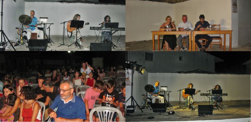 Η απαγγελία των ποιημάτων εναλλασόταν με μελοποιημένη ποίηση από γνωστούς συνθέτες και ποιητές που αποδόθηκε με τον καλύτερο τρόπο από την κα Ευγενία Γρέντζελου (τραγούδι, κιθάρα), την κα Μικαέλα Παπαχρυσάνθου (τραγούδι, πιάνο) και τον Κώστα Μανώλη στα κρουστά. Στην εκδήλωση συμμετείχε και ο Αγρινιώτης συνθέτης Πάνος Μαμασούλας, παίζοντας κρουστά σε δική του σύνθεση. Η έκπληξη της βραδιάς έγινε από τον Νώντα Σαρλή ο οποίος τραγούδησε το ποίημα του Ναπολέοντα Λαπαθιώτη «κλείσε τα παράθυρα μην βλέπουν οι γειτόνοι, και την πόρτα σφάλισε και σβήσε το κερί…».