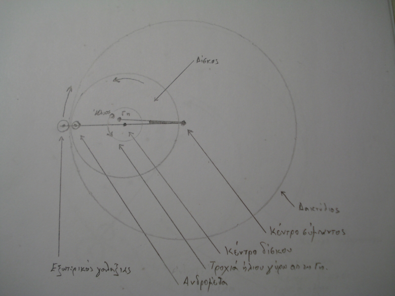 Η Γη και η Σελήνη είναι τα μοναδικά σώματα του Σύμπαντος που βρίσκονται εντός του κενού που δημιουργεί η κίνηση του δίσκου, όπως το περιγράφει ο Ιδομενέας δίνοντας εκτός απ την περιγραφή και την εικόνα του, στο ‘’Η αποκάλυψη του σύμπαντος’’! ( Βρείτε το στο διαδίκτυο)