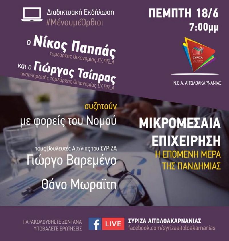 ΣΥΡΙΖΑ Αιτωλοακαρνανίας: Διαδικτυακή εκδήλωση με Ν. Παππά και Γ. Τσίπρα με θέμα