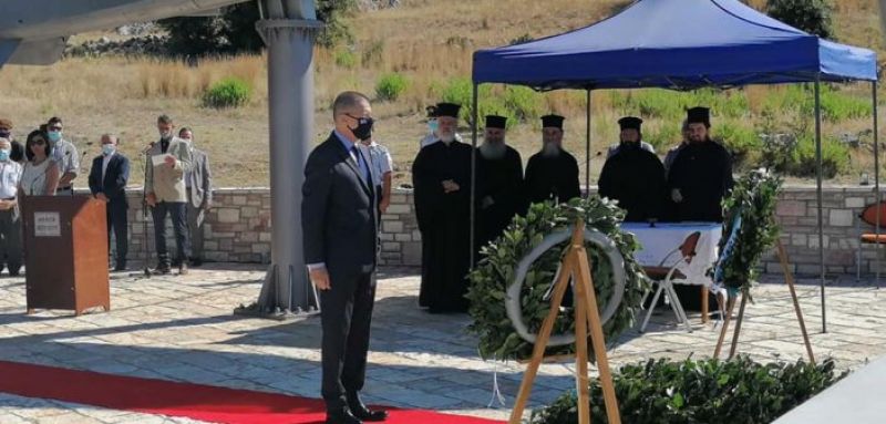 Κατέθεσε στεφάνι στο μνημείο που δημιουργήθηκε για να τιμηθούν οι πέντε ήρωες της Πολεμικής Αεροπορίας, Νικόλαος Σιαλμάς, Κωνσταντίνος Κοντογιώργος, Ευάγγελος Σταθόπουλος, Βασίλειος Κουρκούτας και Ευστάθιος Τσίγκας, οι οποίοι έπεσαν στο καθήκον υπερασπιζόμενοι την εδαφική ακεραιότητα της Πατρίδας.