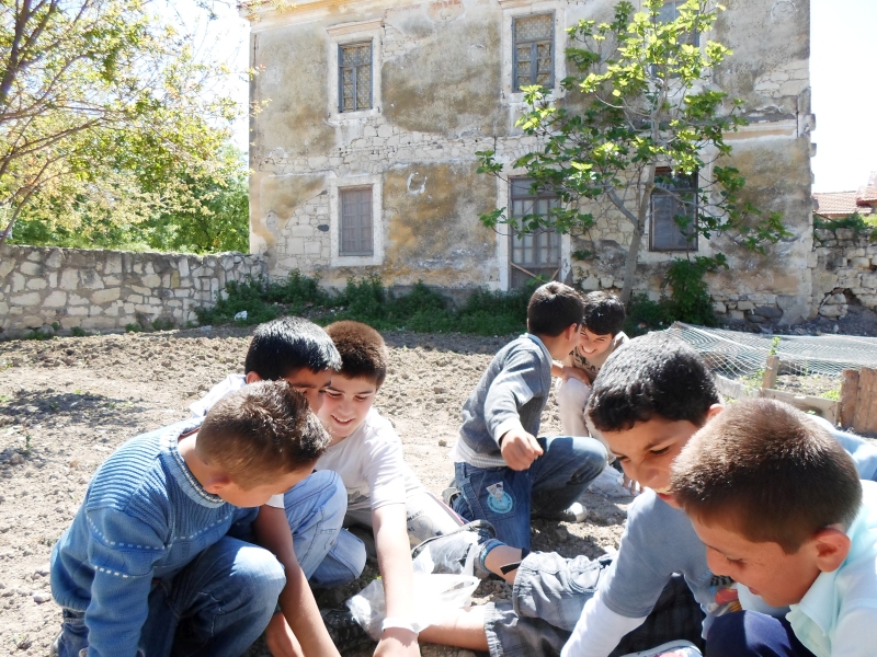 - Μία εκ των φωτογραφιών, στην οποία εικονίζονται τα παιδιά του δημοτικού του Ρεΐζντερε, κατά τη συλλογή χώματος στον κήπο του προβαλλόμενου ελληνικού αρχοντικού.