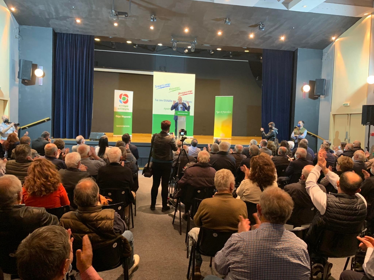 Η συγκέντρωση ξεκίνησε περί τις 12:40 και λαμβάνει χώρα με αυστηρή εφαρμογή των υγειονομικών μέτρων ενώ τηρήθηκε ενός λεπτού σιγή στη μνήμη της Φώφης Γεννηματά. Προηγουμένως ο πρώην πρωθυπουργός επισκέφθηκε τα γραφεία του κόμματος στην κεντρική πλατεία όπου προέβη και σε δηλώσεις στα μέσα ενημέρωσης.