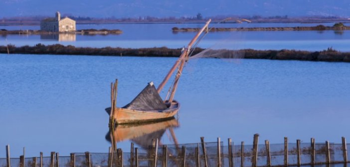 Το όλο κινηματογραφικό σκηνικό συμπληρώνεται από τις πελάδες, τα χαρακτηριστικά ξύλινα σπίτια των ψαράδων που μοιάζουν να αναδύονται από τα νερά της λιμνοθάλασσας.