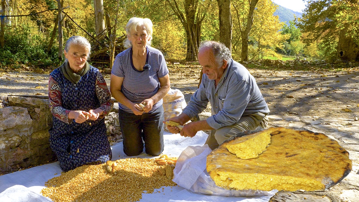 Η κ.Αλεξάνδρα από τη Φραγκίστα Ευρυτανίας, μας δείχνει πως γινόταν το μάζεμα και το ξεσπόριασμα του καλαμποκιού και μας φτιάχνει μια απλή και νόστιμη μπομπότα με φρέσκο αλεύρι καλαμποκιού και μας θυμίζει την παραδοσιακή τέχνη παρασκευής της μπομπότας.