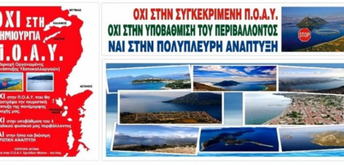 Τα μέλη της Επιτροπής Αγώνα, αφού εξέθεσαν με σαφήνεια τους λόγους για τους οποίους αντιδρούν στην ίδρυση της εν λόγω Π.Ο.Α.Υ, καταδίκασαν απερίφραστα τις μεθοδεύσεις της Κυβέρνησης και των δύο κομμάτων της αντιπολίτευσης, ΣΥ.ΡΙΖ.Α – ΚΙΝ.ΑΛ, που «εναγκαλιζόμενοι» με τους επιχειρηματίες του κλάδου των ιχθυοκαλλιεργειών, προχωρούν στην ολοκλήρωση των σχεδίων τους, αγνοώντας επιδεικτικά τις αντιδράσεις των κατοίκων και των φορέων της περιοχής του Δήμου Ξηρομέρου.