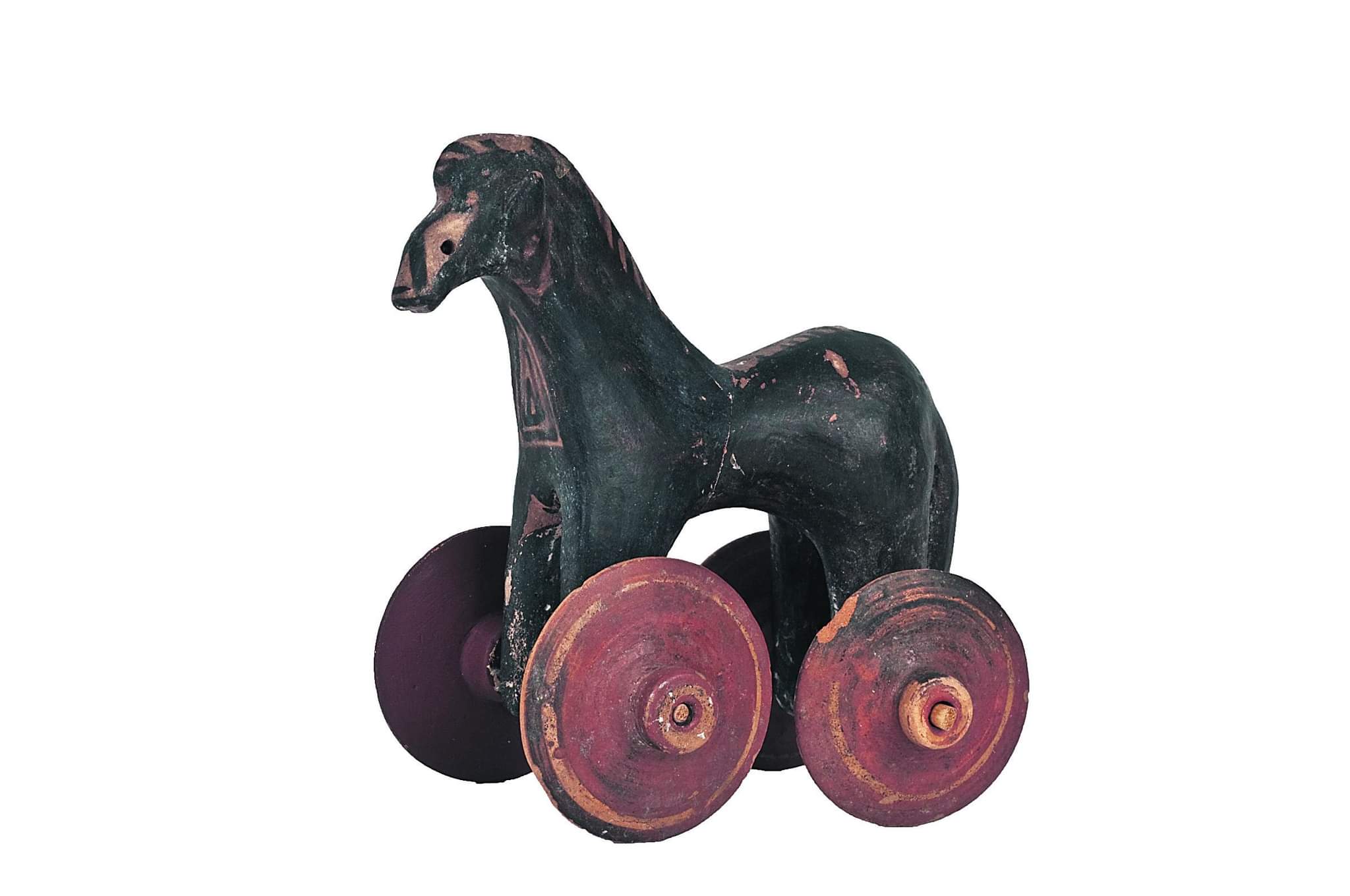 Στην Αγγειοπλαστική ο θαυμασμός και η αγάπη των αρχαίων Αθηναίων για το πανέμορφο και περήφανο αυτό ζώο, φαίνεται από τον μεγάλο αριθμό αμφορέων διακοσμημένων με μορφές αλόγων και ιππέων, τα πήλινα σκεύη με μορφές αλόγων, τα παιδικά κερμικά αλογάκια. Μια ιδιαίτερη αναφορά πρέπει να γίνει και στις παιδικές ταφές, τους «εγχυτρισμούς». Οι αμφορείς μέσα στους οποίους θάβονταν βρέφη, που συνοδεύονταν από ταπεινά κτερίσματα, όπως παιχνίδια και μικρογραφίες αγγείων, στην εξωτερικής τους επιφάνεια απεικόνιζαν άλογα.