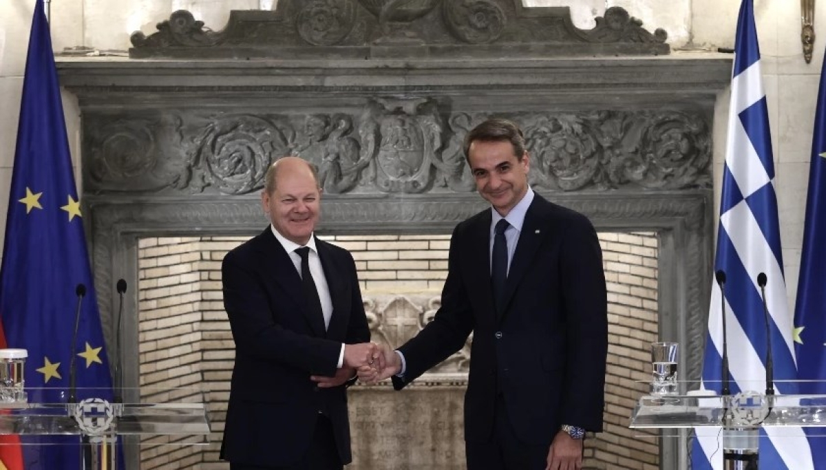 Ο Πρωθυπουργός Κυριάκος Μητσοτάκης υποδέχθηκε τον Καγκελάριο της Ομοσπονδιακής Δημοκρατίας της Γερμανίας Όλαφ Σολτς στην πρώτη επίσκεψή του στην Αθήνα.