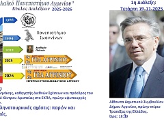 Η Γυμναστική Εταιρεία Αγρινίου ανακοινώνει την έναρξη των εισηγήσεων της σχολής Τοπικής Ιστορίας και Πολιτισμού «Αθανάσιος Παλιούρας». Την Τετάρτη 19 Νοεμβρίου 2025 και ώρα 19:00, στο Παπαστράτειο Μέγαρο υποδεχόμαστε την Δρ Σαράντη Φωτεινή (Αναπληρώτρια Προϊσταμένη Εφορίας Αρχαιοτήτων Αιτωλοακαρνανίας και Λευκάδας) με θέμα «Αρχαίες Πόλεις της Αιτωλίας, μέσα από το φως των σωστικών ανασκαφών».…
