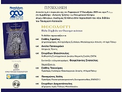 ΠΡΟΣΚΛΗΣΗ Αποτελεί τιμή η παρουσία σας την Παρασκευή 17 Οκτωβρίου 2025 και ώρα 7.30 μ.μ. στο Αμφιθέατρο «Αντώνης Τρίτσης» του Πνευματικού Κέντρου Δήμου Αθηναίων , Ακαδημίας 50 Αθήνα στην παρουσίαση του νέου βιβλίου του Παναγιώτη Κατσούλη ΜΕΣΟΛΟΓΓΙ Πόλη Σύμβολο της Οικουμενικότητας Το βιβλίο παρουσιάζουν οι: Στάθης ΣφαέλοςΔημοσιογράφος , Αντιπρόεδρος Συλλόγου Μεσολογγιτών Αττικής « Η Ιερά Πόλις »…