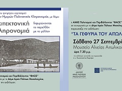 Με ιδιαίτερη χαρά η ΑΜΚΕ Πολιτισμού και Περιβάλλοντος «ΦΑΟΣ», σε συνεργασία με τον Δήμο Ιεράς Πόλεως Μεσολογγίου, ανακοινώνει την εκδήλωση «Τα Γεφύρια του Αιτωλικού», η οποία θα πραγματοποιηθεί το Σάββατο, 27 Σεπτεμβρίου 2025, στις 19:30, στο Μουσείο Αλιείας Αιτωλικού. Η εκδήλωση εντάσσεται στο πλαίσιο των Ευρωπαϊκών Ημερών Πολιτιστικής Κληρονομιάς (ΕΗΠΚ), με το φετινό θέμα να είναι…