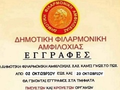 Ξεκινούν οι εγγραφές στη Δημοτική Φιλαρμονική Αμφιλοχίας από 2 Οκτωβρίου έως και 20 Οκτωβρίου στα τμήματα θεωρίας και εκμάθησης πνευστών και κρουστών μουσικών οργάνων. Οι εγγραφές, τα μαθήματα και η παροχή μουσικού οργάνου και στολής είναι δωρεάν *Εγγραφές- πληροφορίες: Πρώην ΠΙΚΠΑ, καθημερινά 17:00 – 19:00 | 26420 24374 – 6980107228 | Αρχιμουσικός κ. Γεώργιος Τσόγκας agrinionews.gr