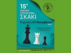 Το σκακιστικό τμήμα της Γυμναστικής Εταιρείας Αγρινίου ανακοινώνει ότι την Κυριακή 23 Νοεμβρίου, και ώρα 09:30 π.μ., θα διεξαχθεί στο Παπαστράτειο Μέγαρο το 15ο Σχολικό Πρωτάθλημα Σκακιού. Η διοργάνωση απευθύνεται σε μαθητές όλων των βαθμίδων εκπαίδευσης — νηπιαγωγείων, δημοτικών σχολείων, γυμνασίων και λυκείων — του Αγρινίου και της ευρύτερης περιοχής. Στόχος του πρωταθλήματος είναι η ενίσχυση…