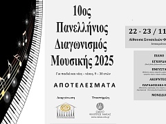 Ο Όμιλος για την UNESCO Τεχνών, Λόγου και Επιστημών Ελλάδος, υπηρετώντας τα ιδανικά του Πολιτισμού και θέλοντας να καταστεί αρωγός των νέων μουσικών ταλέντων της πατρίδας μας, πραγματοποίησε τον 10ο Πανελλήνιο Διαγωνισμό Μουσικής, για το έτος 2025, με την υποστήριξη του Ωδείου Φίλιππος Νάκας, στην Αίθουσα Συναυλιών του, στις 22 και 23 Νοεμβρίου. Στον διαγωνισμό συμμετείχαν 59 παιδιά, έφηβοι και…