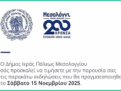 Προγραμματισμένες εκδηλώσεις της «Διεξόδου» για την επέτειο των 200 χρόνων από την Έξοδο Έκθεση έργων τέχνης σχετικών με την Έξοδο στο Ίδρυμα Πολιτισμού «Ανδρέας Λεντάκης» στην Αθήνα. Τίτλος «Μεσολόγγι – Το αλωνάκι της δόξας» (Από 17/1 έως 15/2/2026). 21 Μαρτίου 2026. Επίσημη κήρυξη ενάρξεως εορταστικών εκδηλώσεων 2026 από τον δήμαρχο στη «Διέξοδο». Εναρκτήρια επετειακή διττή έκθεση με τον τίτλο…