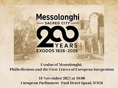 Ο Δήμαρχος Σπύρος Διαμαντόπουλος θα απευθύνει χαιρετισμό στο Ευρωπαϊκό Κοινοβούλιο Το Ευρωπαϊκό Κοινοβούλιο τιμά τη Διακοσιοστή Επέτειο της Εξόδου του Μεσολογγίου με την εκδήλωση «Η Έξοδος του Μεσολογγίου: Ο Φιλελληνισμός και τα Πρώτα Ίχνη της Ευρωπαϊκής Ενοποίησης», η οποία θα πραγματοποιηθεί στις Βρυξέλλες την προσεχή Τρίτη, 18 Νοεμβρίου 2025 στις 19:00 (ώρα Ελλάδας). Στο πλαίσιο της εκδήλωσης,…