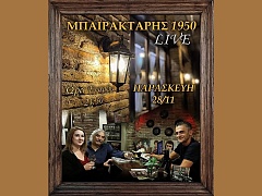 Κάθε Παρασκευή βράδυ απολαύστε το φαγητό σας στην Ταβέρνα "ΜΠΑΪΡΑΚΤΑΡΗΣ" στο Αγρίνιο σε ζεστό ατμοσφαιρικό περιβάλλον με ζωντανή μουσική. Μαζί σας ο Χρήστος Παντούλας (τραγούδι), η Παναγιώτα Τσόλκα (τραγούδι) και ο Θόδωρος Τσουνάκας (πλήκτρα). Κρατήσεις 694 225 9976