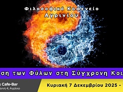 Το Φιλοσοφικό Καφενείο Αγρινίου, της Κίνησης Πνευματικού Ακτιβισμού «ΦΩΣ ΣΕ ΔΡΑΣΗ» σας προσκαλεί στην τελευταία συνάντηση για το 2025, με ένα εξαιρετικά ενδιαφέρον και επίκαιρο θέμα: «Η Σχέση των Φύλων στη Σύγχρονη Κοινωνία». Η συζήτηση θα επικεντρωθεί στη σχέση των φύλων στη σύγχρονη κοινωνία, ενώ θα παρουσιαστούν τα χαρακτηριστικά της σχέσης αυτής κατά την πορεία της στο χρόνο, τους ρόλους που…