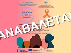 Η Δημοτική Επιτροπή Ισότητας και το Αυτοτελές Τμήμα Κοινωνικής Προστασίας του Δήμου Ιερής Πόλης Μεσολογγίου ενημερώνουν ότι αναβάλλεται λόγω κακοκαιρίας η εκδήλωση στην κεντρική πλατεία Μάρκου Μπότσαρη που ήταν προγραμματισμένη για σήμερα Τρίτη, 25 Νοεμβρίου 2025, στο πλαίσιο της εβδομάδας ενημέρωσης και ευαισθητοποίησης για την εξάλειψη της βίας κατά των Γυναικών «Μίλα τώρα – η Πόλη σου…