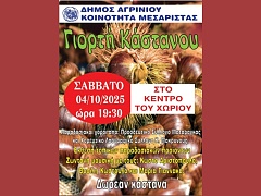 Η Μεσάριστα ετοιμάζεται να φορέσει τα φθινοπωρινά της και να υποδεχθεί ντόπιους και επισκέπτες στη φετινή «Γιορτή Κάστανου», που θα πραγματοποιηθεί το Σάββατο 4 Οκτωβρίου 2025, στις 7:30 το απόγευμα, στο κέντρο του χωριού. Η εκδήλωση υπόσχεται μια ζεστή βραδιά με ζωντανή μουσική, μπόλικο κέφι και φυσικά άφθονα καλοψημένα κάστανα, που θα μοιραστούν σε όλους. Η ατμόσφαιρα αναμένεται γιορτινή, με…