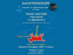 Καλλιτεχνοχώρι — Εφηβική Θεατρική Ομάδα Gue 29 Παρουσιάζει τη σκηνική ανάγνωση: «Ποιος σκότωσε το σκύλο τα μεσάνυχτα» ελεύθερα εμπνευσμένη από το έργο του Μαρκ Χάντον Κυριακή 5 Οκτωβρίου, 8:30 μ.μ. — Χώρος: Καλλιτεχνοχώρι, Κακαβιά 29, Αγρίνιο Είσοδος ελεύθερη • Περιορισμένες θέσεις — σειρά προτεραιότητας στην είσοδο • Καταλληλότητα: 12+ Η σκηνική ανάγνωση είναι δουλειά της εφηβικής ομάδας Gue 29…
